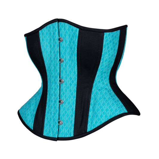 Shades of Aqua in Checks Novice Corset, Hourglass Silhouette, Regular